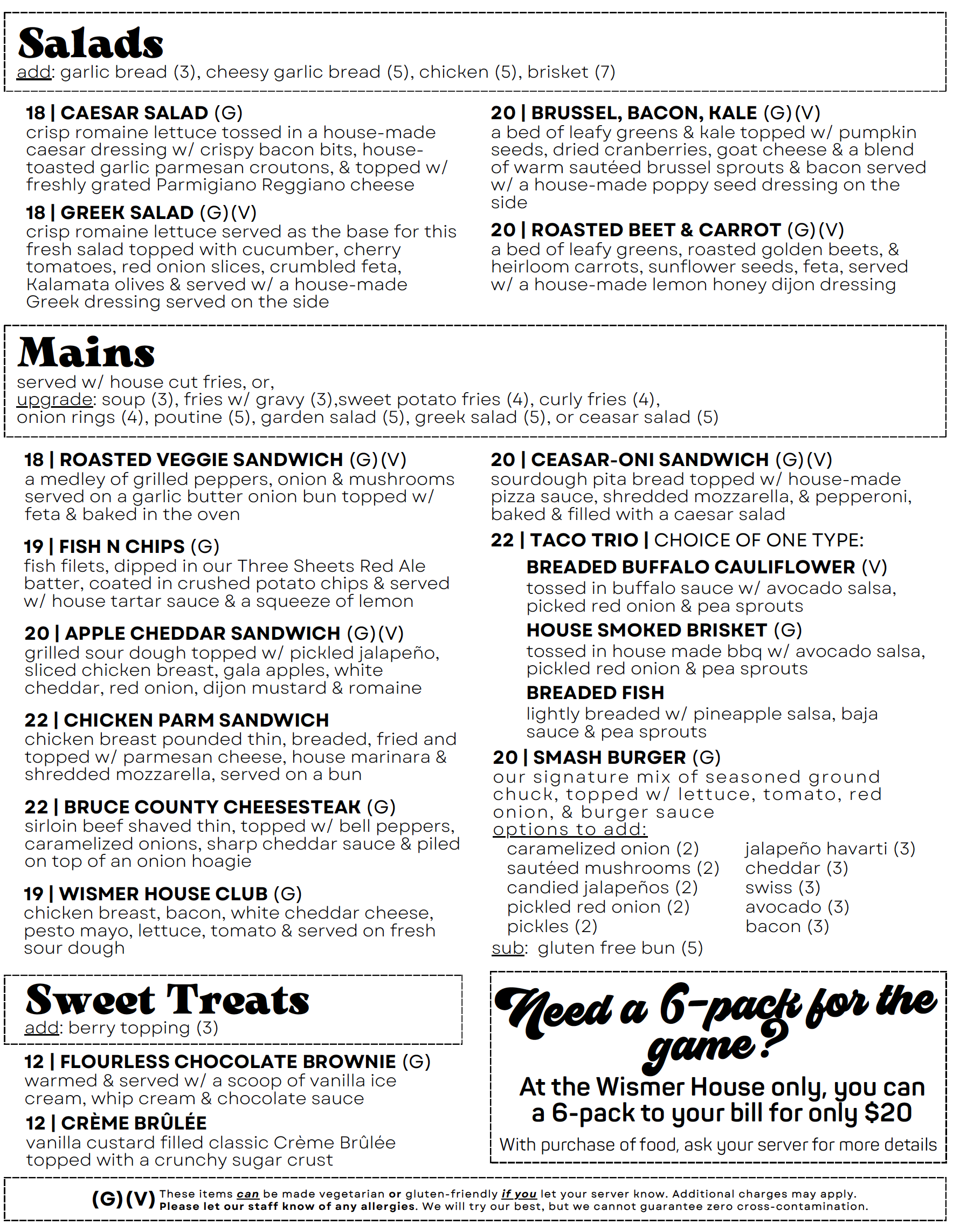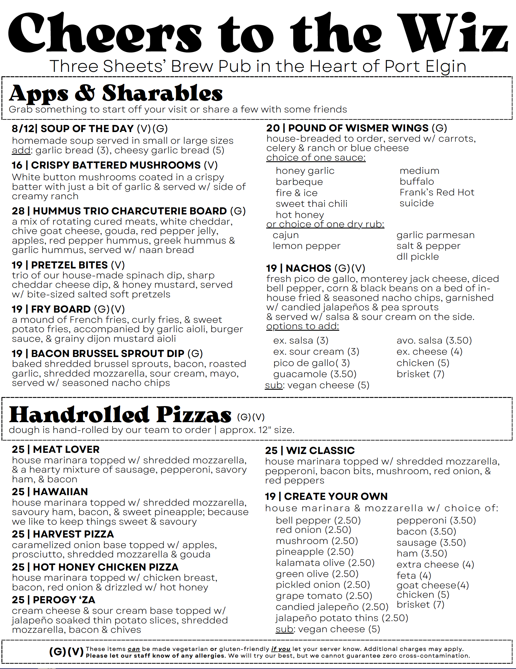 Some dishes can be made Gluten Friendly (GF) or Vegan / Vegetarian Friendly (V).(Extra charges will apply)